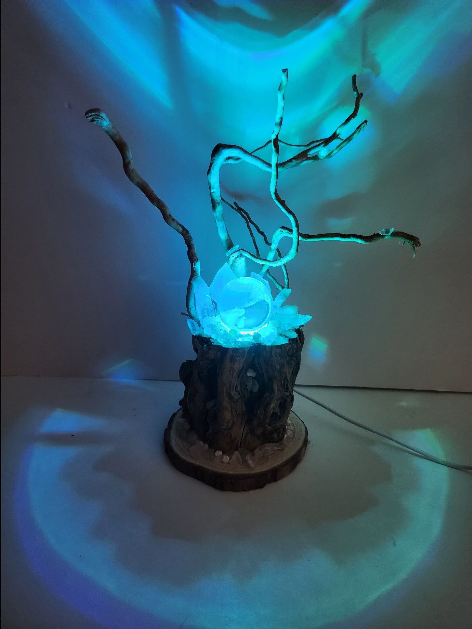 Materials: Driftwood, crystal ball, and night light